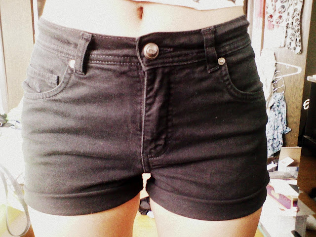 65-68. wanted black jean shorts. went to thrift store + found ugly black pants. bought them for $3.